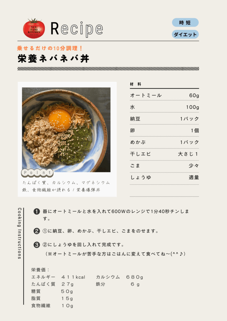 オートミールが苦手な方は、ごはんに変えてもOK♪
